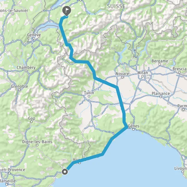 Prendre à droite et rejoindre A8. Continuer sur 20 kilomètres