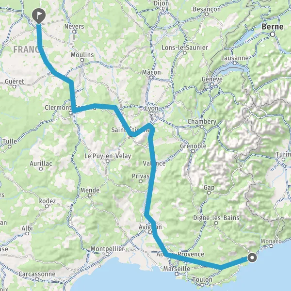 Prendre à droite et rejoindre A72. Continuer sur 53 kilomètres