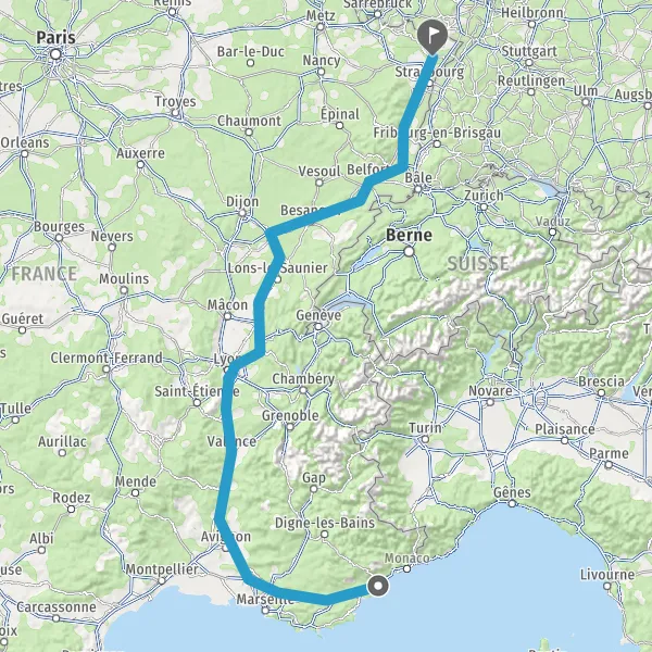 Prendre à droite et rejoindre A36 E60. Continuer sur 185 kilomètres