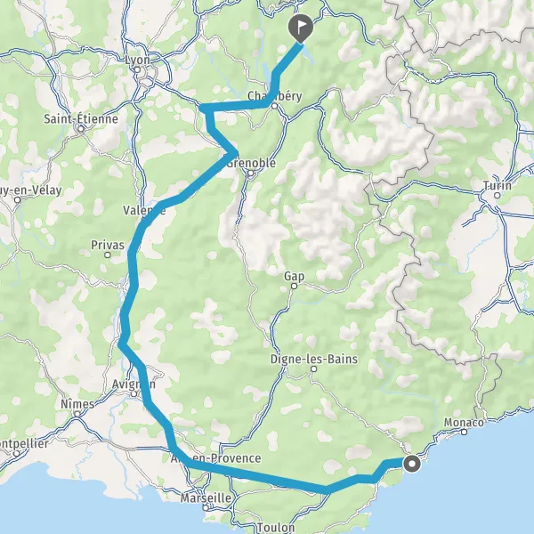 Sortir et rejoindre Avenue du Rhône. Continuer sur 650 mètres