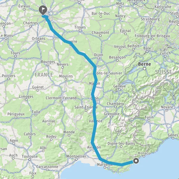 Prendre à droite et rejoindre A6. Continuer sur 294 kilomètres