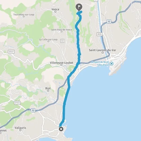 Tourner légèrement à droite sur M18 (Route de Cagnes) et continuer sur 130 mètres