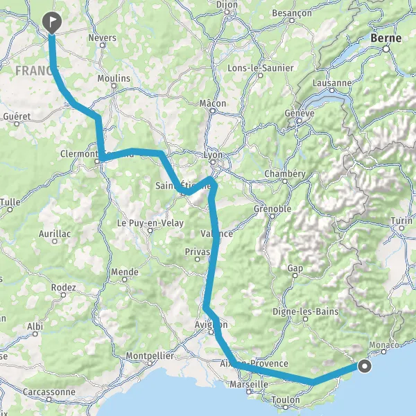 Prendre à droite et rejoindre A72. Continuer sur 53 kilomètres