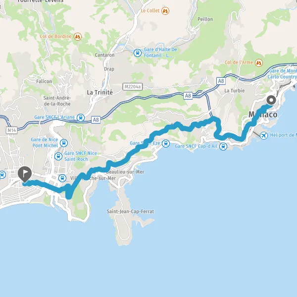 Avec le mode voiture, vous pouvez configurer vos options (type de véhicule, autoroute ou non, péage ou non, distance la plus courte), tout en ayant accès aux infos de circulation grâce à notre service d'info-trafic en temps réel. Ainsi faites des économies sur le coût ou la durée de votre voyage, en trouvant le trajet Beausoleil Nice adapté à vos besoins.