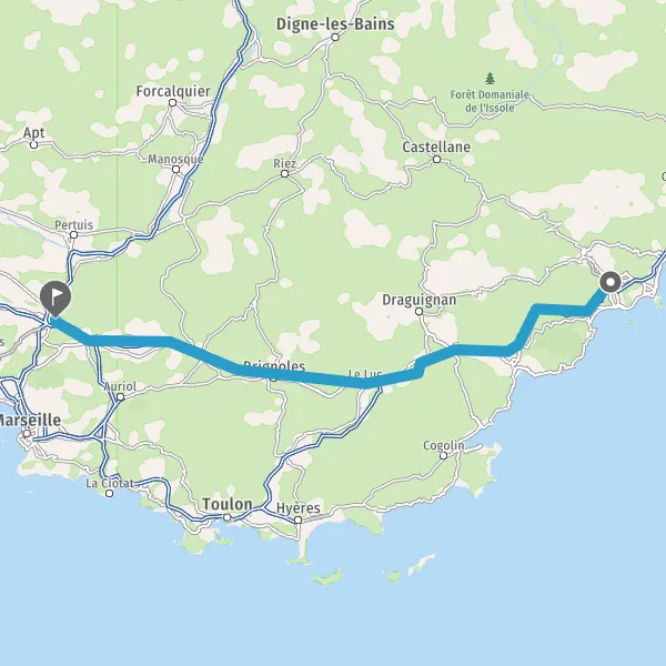 Avec le mode voiture, vous pouvez configurer vos options (type de véhicule, autoroute ou non, péage ou non, distance la plus courte), tout en ayant accès aux infos de circulation grâce à notre service d'info-trafic en temps réel. Ainsi faites des économies sur le coût ou la durée de votre voyage, en trouvant le trajet Mougins Aix-en-Provence adapté à vos besoins.