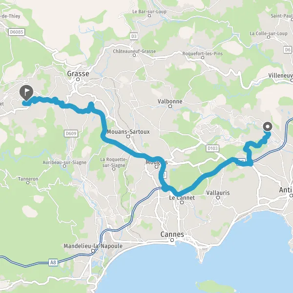 Au rond-point, prendre la 2ème sortie sur D9 (Route de Pégomas) et continuer sur 600 mètres