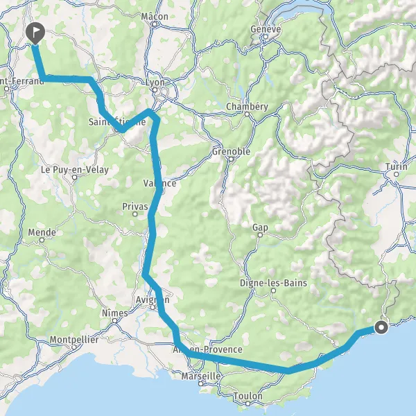 Prendre à droite et rejoindre A72. Continuer sur 53 kilomètres