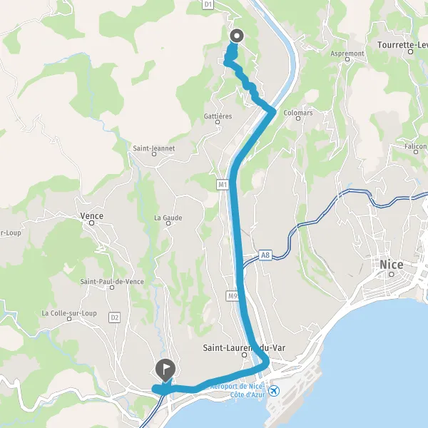 Prendre à droite et rejoindre M6202 (Boulevard du Mercantour). Continuer sur 2,5 kilomètres