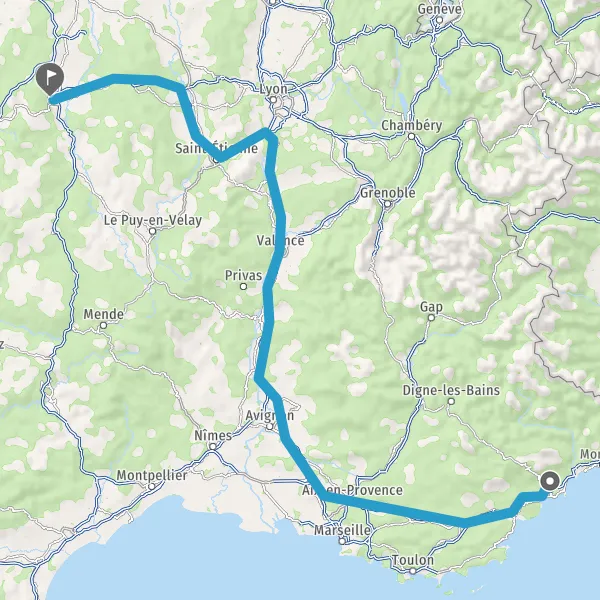 Prendre à droite et rejoindre A72. Continuer sur 1 kilomètre