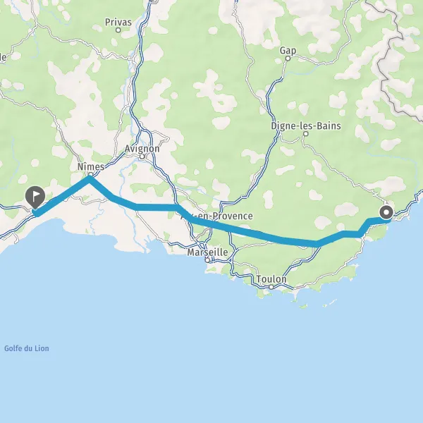 Prendre à droite et rejoindre A8 E80. Continuer sur 140 kilomètres