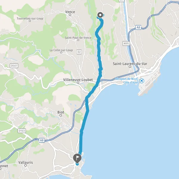 Tourner légèrement à gauche sur M18 (Route de Cagnes) et continuer sur 550 mètres