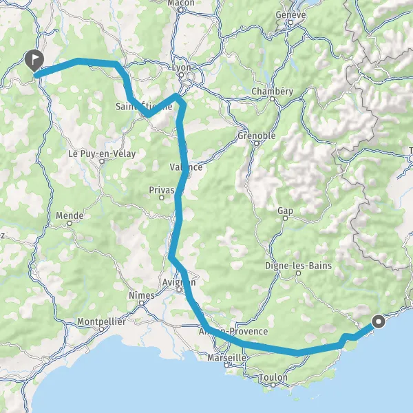 Prendre à droite et rejoindre A72. Continuer sur 53 kilomètres