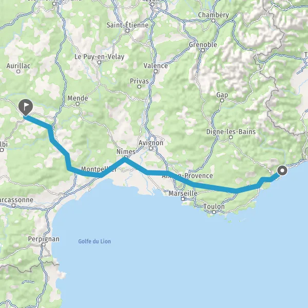Prendre à droite et rejoindre A8. Continuer sur 159 kilomètres