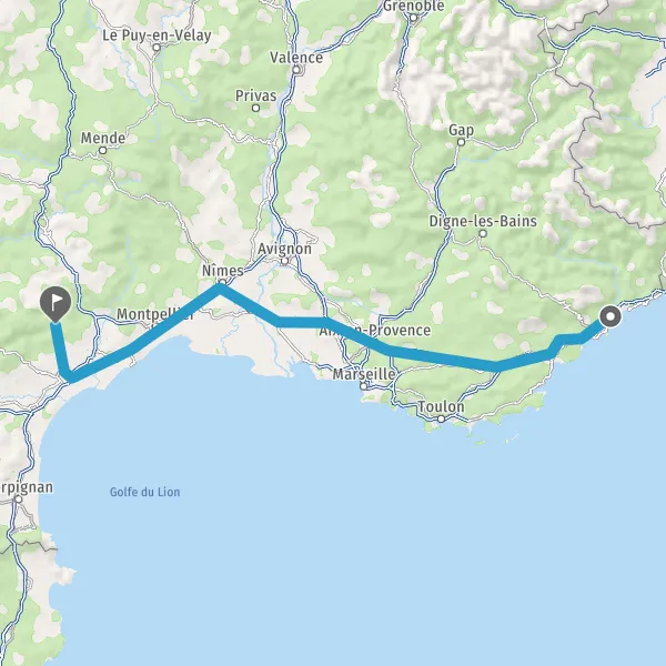 Prendre à droite et rejoindre D612 (Avenue de la Méditerranée). Continuer sur 5,8 kilomètres