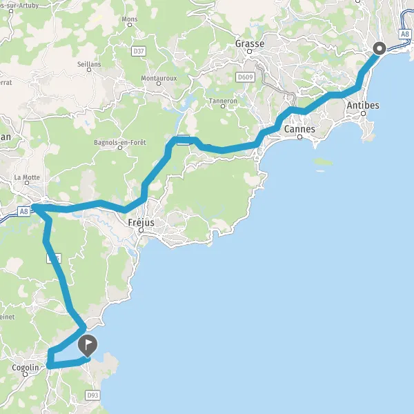Tourner à droite sur D125 (Route de Sainte-Maxime) et continuer sur 17 kilomètres