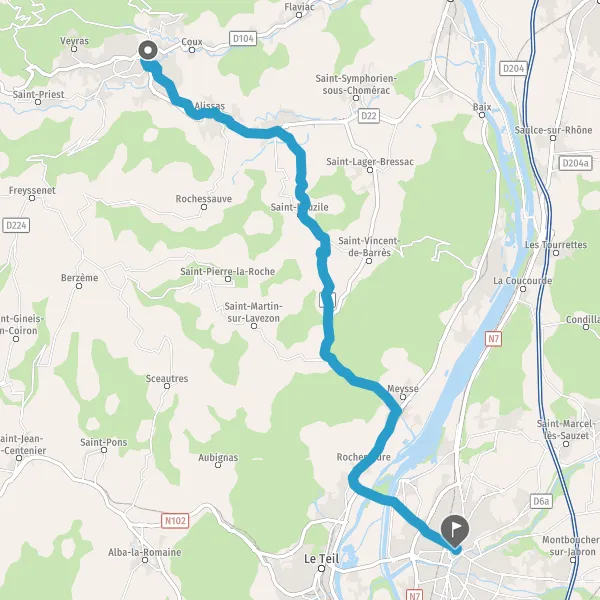 Au rond-point, prendre la 2ème sortie sur D2 (Avenue de Chomérac) et continuer sur 550 mètres