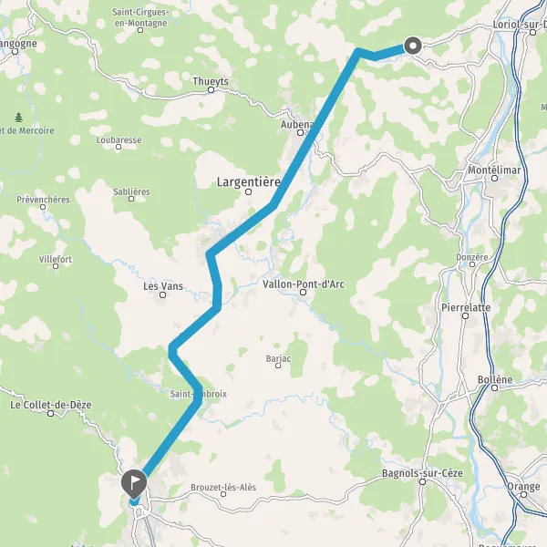 Au rond-point, prendre la 2ème sortie sur D104 (Route d'Aubenas) et continuer sur 1,8 kilomètre