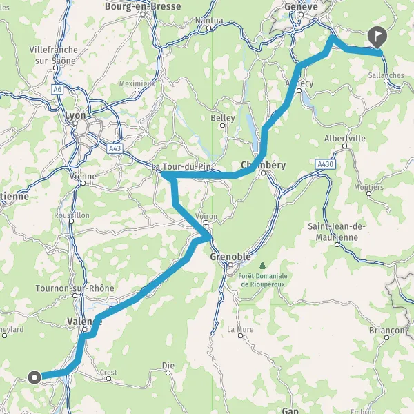 Prendre à droite et rejoindre A43 E70. Continuer sur 47 kilomètres