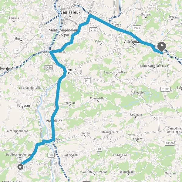Prendre à droite et rejoindre A7. Continuer sur 33 kilomètres