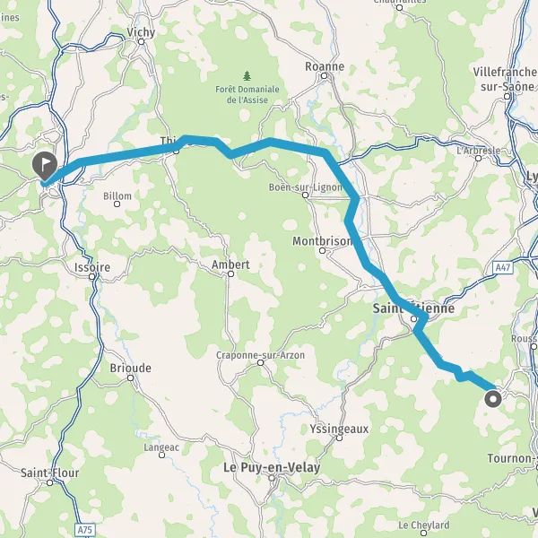 Tourner légèrement à droite sur A72 et continuer sur 54 kilomètres