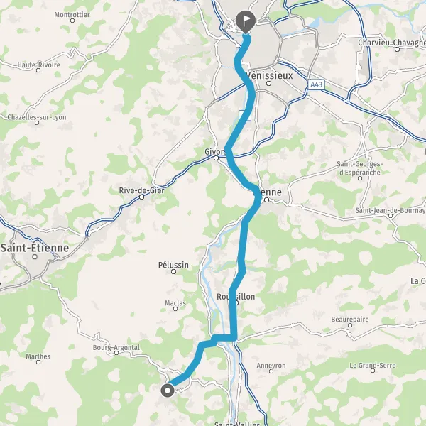 Prendre à droite et rejoindre A7. Continuer sur 46 kilomètres