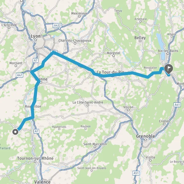 Prendre à droite et rejoindre A43 E70. Continuer sur 47 kilomètres