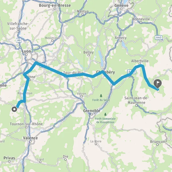 Prendre à droite et rejoindre A43. Continuer sur 19 kilomètres