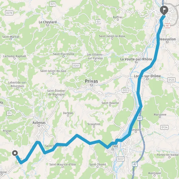 Au rond-point, prendre la 3ème sortie sur N102 (Route du Teil) et continuer sur 8,4 kilomètres