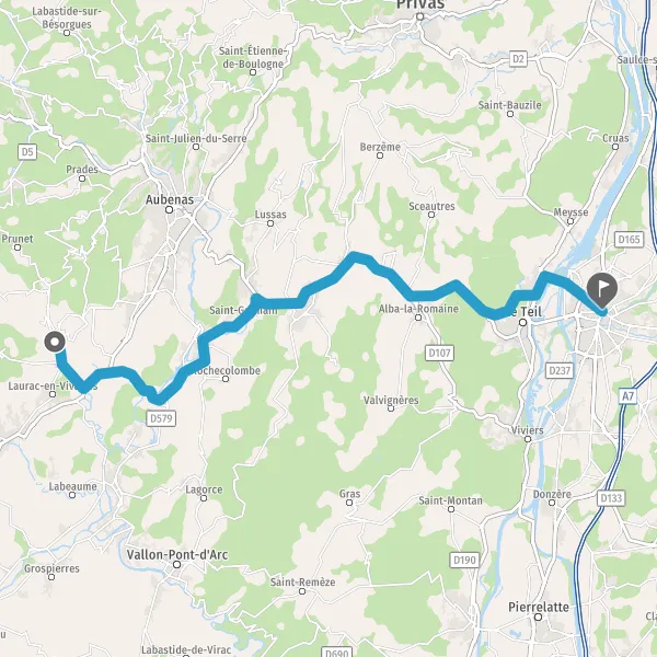 Au rond-point, prendre la 3ème sortie sur N102 (Route du Teil) et continuer sur 8,4 kilomètres
