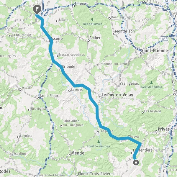 Tourner légèrement à gauche sur N102 (Route du Puy-en-Velay) et continuer sur 15 kilomètres