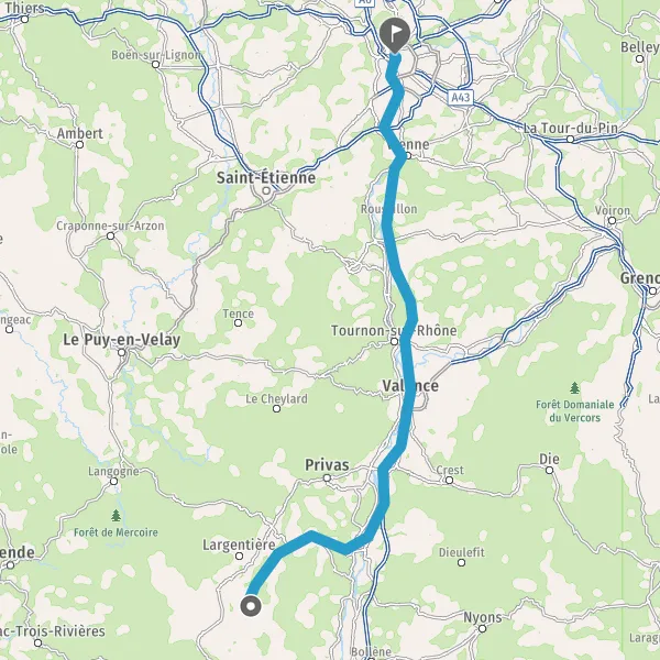 Au rond-point, prendre la 3ème sortie sur N102 (Route du Teil) et continuer sur 8,4 kilomètres