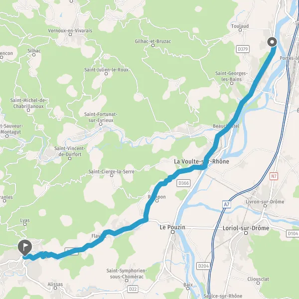 Tourner légèrement à droite sur D104 (Route de Privas) et continuer sur 6,1 kilomètres