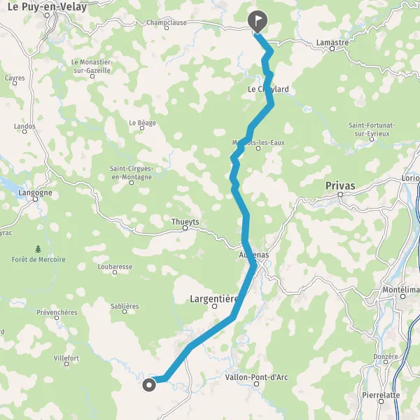 Au rond-point, prendre la 3ème sortie sur Route de la Chapelle-sous-Aubenas et continuer sur 3,5 kilomètres