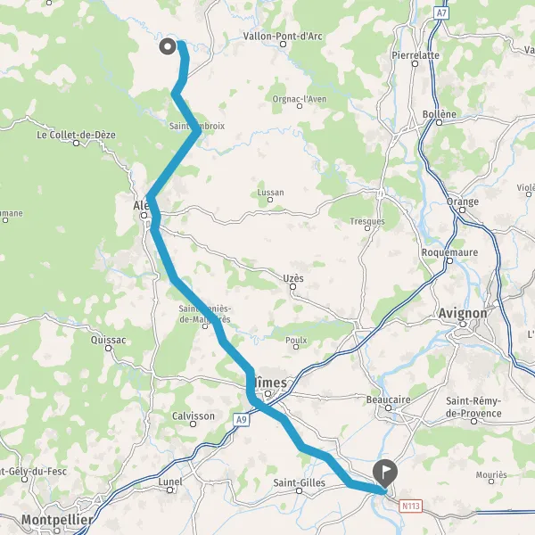 Au rond-point, prendre la 2ème sortie sur D904 (Route de Saint-Ambroix) et continuer sur 1 kilomètre