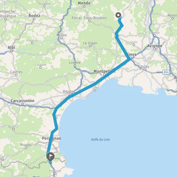 Prendre à droite et rejoindre A9 E15 E80. Continuer sur 32 kilomètres