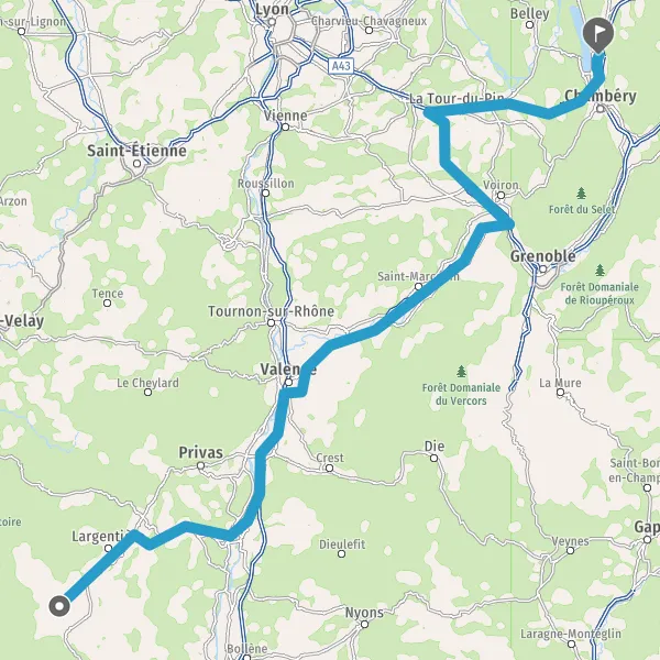 Prendre à droite et rejoindre A43 E70. Continuer sur 47 kilomètres