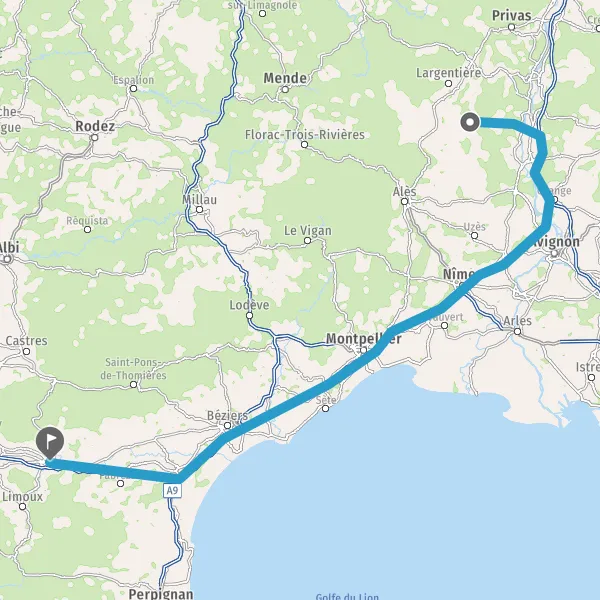 Prendre à droite et rejoindre A9 E15 E80. Continuer sur 32 kilomètres