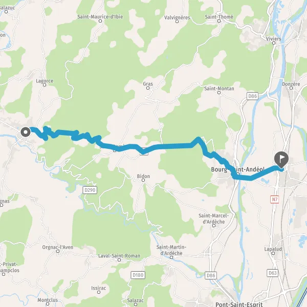 Au rond-point, prendre la 3ème sortie sur D4 (Route de Bourg-Saint-Andéol) et continuer sur 4,4 kilomètres