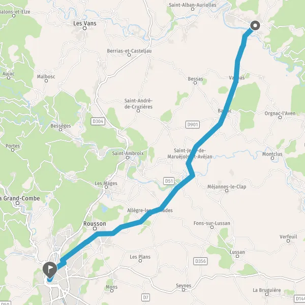 Au rond-point, prendre la 2ème sortie sur D16 (Route de Salindres) et continuer sur 1,5 kilomètre
