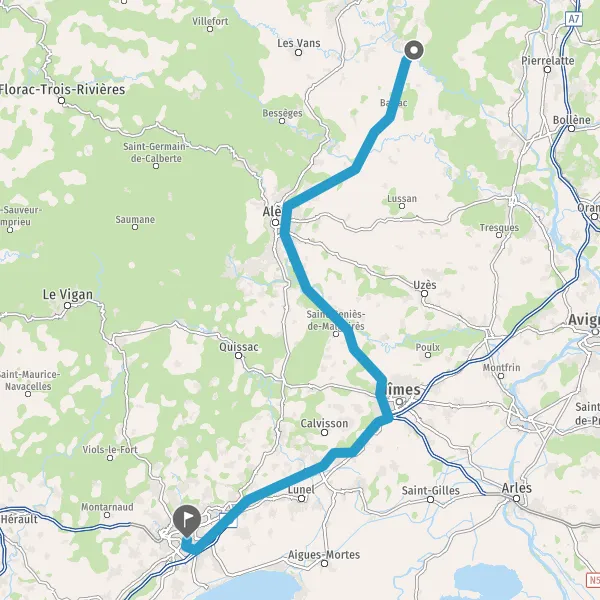 Au rond-point, prendre la 2ème sortie sur D579 (Route de Barjac) et continuer sur 3,8 kilomètres