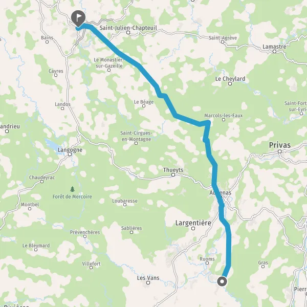 Au rond-point, prendre la 2ème sortie sur D579 (Route d'Aubenas) et continuer sur 4,3 kilomètres