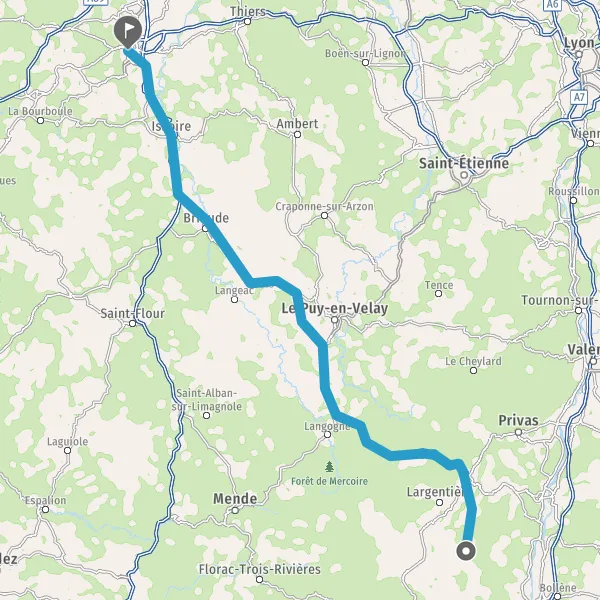 Tourner légèrement à gauche sur N102 (Route du Puy-en-Velay) et continuer sur 15 kilomètres