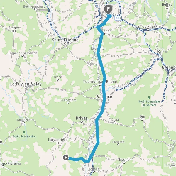 Prendre à droite et rejoindre A46. Continuer sur 19 kilomètres