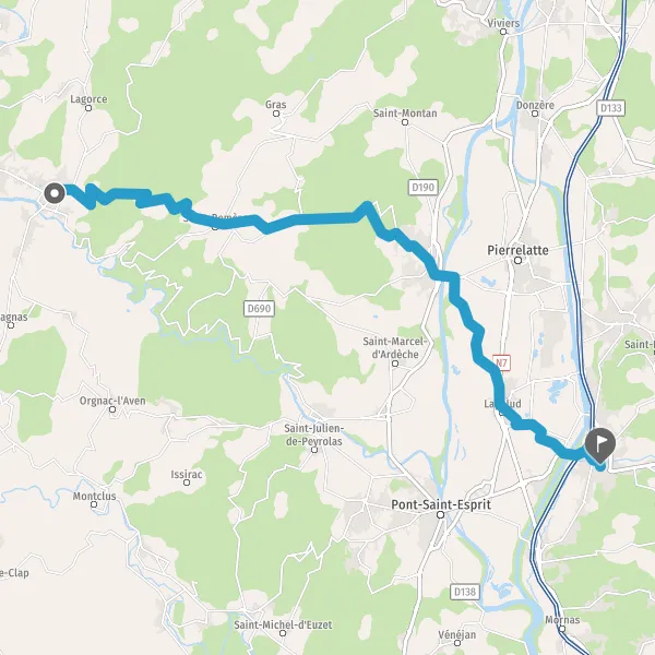 Au rond-point, prendre la 3ème sortie sur D4 (Route de Bourg-Saint-Andéol) et continuer sur 4,4 kilomètres