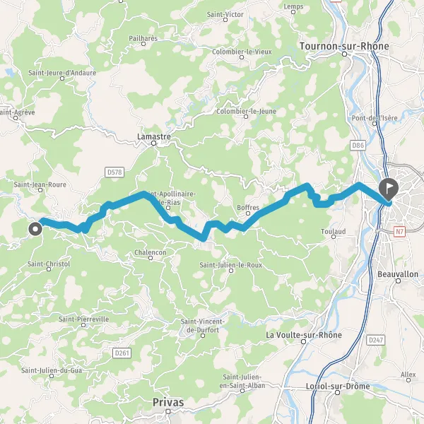 Tourner légèrement à droite sur D2 (Route de Lamastre) et continuer sur 550 mètres