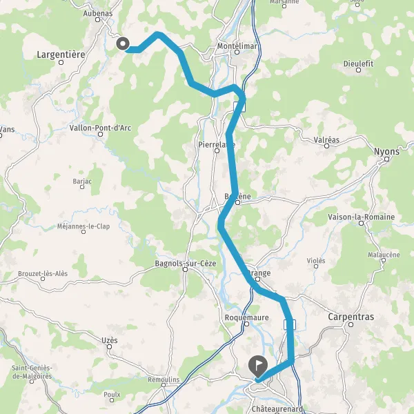 Au rond-point, prendre la 3ème sortie sur N102 (Route du Teil) et continuer sur 8,4 kilomètres