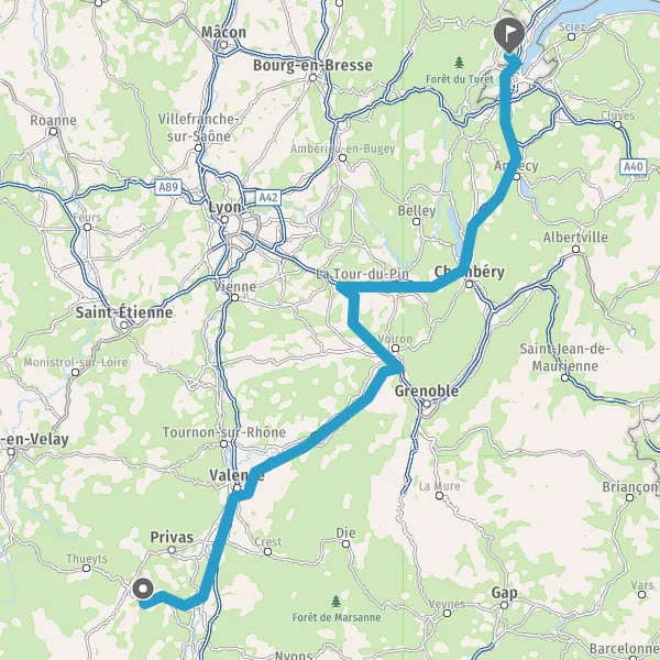 Prendre à droite et rejoindre A43 E70. Continuer sur 47 kilomètres