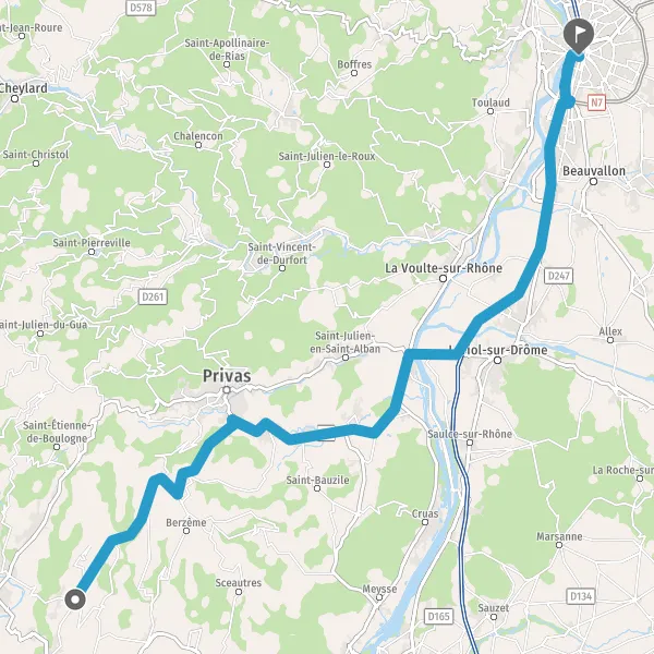 Au rond-point, prendre la 3ème sortie sur N102 (Route du Teil) et continuer sur 8,4 kilomètres