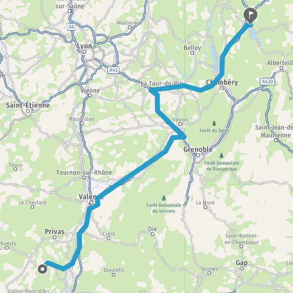 Prendre à droite et rejoindre A43 E70. Continuer sur 47 kilomètres