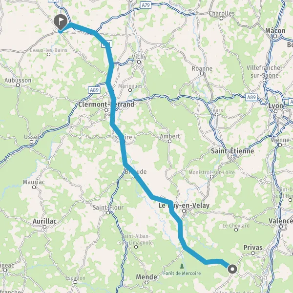 Tourner légèrement à gauche sur N102 (Route du Puy-en-Velay) et continuer sur 15 kilomètres